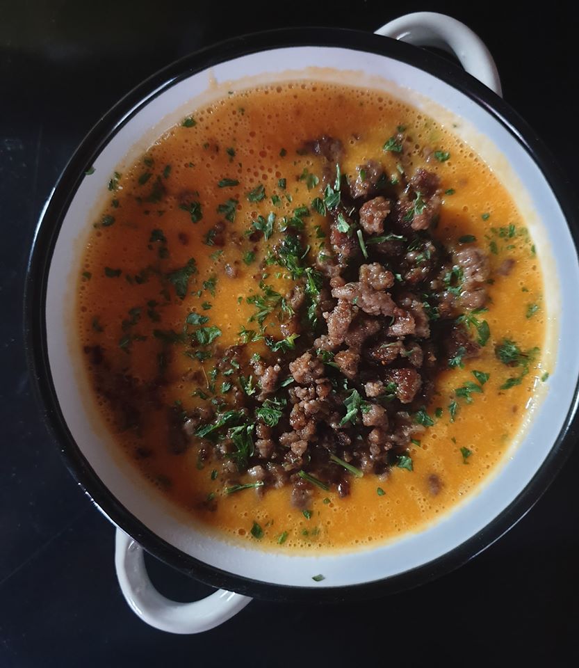 🔸 Ich habe noch extra Gehacktes gut angebraten, gewürzt und mit zu der Suppe gegeben zum Schluss sowie mit getrockneter Petersilie bestreut 🥕🥔🌿
