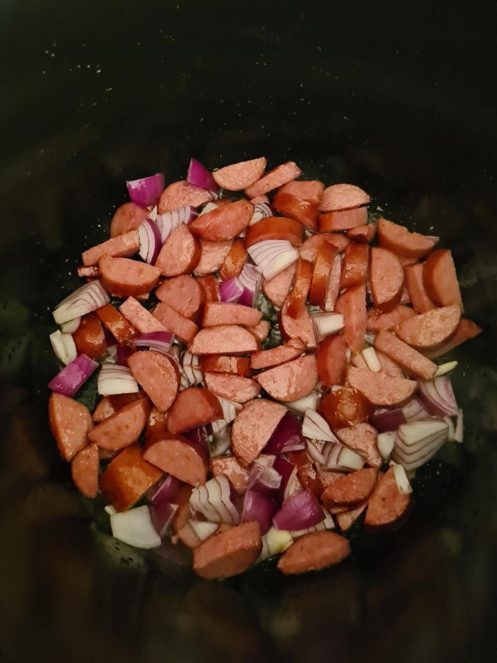 ▪Kabanossi in nicht zu dünne Stücke schneiden und ein paar Minuten anbraten